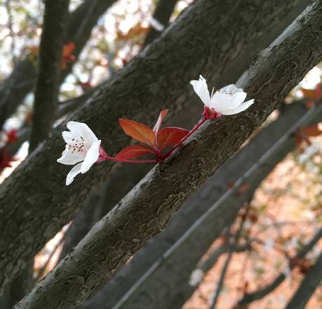 初春的时候百草路校区角落里的樱花会开,总是太阳不好,叶子也蔫蔫的,可细弱的枝干上要粘满浅粉的瓣。那些花落在水泥地上也似乎要铺设一条花径,而它们安然地等待朝露,在夜色里染满从书本中抬头的学子的眼眸。